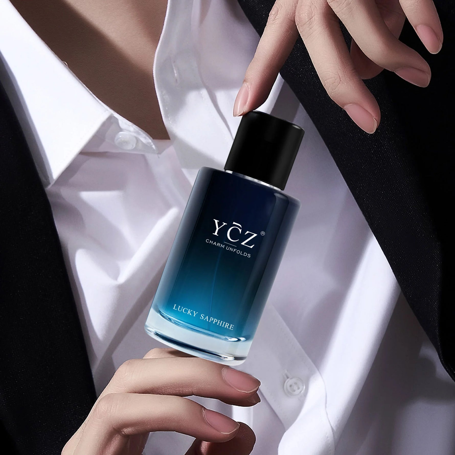 Unit price perYCZ Lucky Sapphire opens with a radiant blend of bergamot, orange, and balsam—a bright, crisp spark wrapped in smooth warmth, awakening the senses like light glimmering across a deep blue ocean. As the scent unfolds, sandalwood emerges at the heart, serene yet magnetic, adding a refined depth that feels grounding and quietly confident. Finally, frankincense, tonka bean, and vanilla settle into a soft, enveloping base—smooth, resinous, and subtly sweet—leaving a trail that feels both calming and irresistibly captivating, like twilight settling over sapphire-colored waters. Crafted with care and presented in a striking dark-blue round bottle, this fragrance captures the spirit of elegance and quiet power—mysterious, sophisticated, and unforgettable.